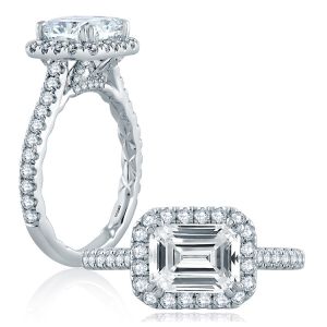 East/West Emerald Cut Pave Halo Engagement Ring.